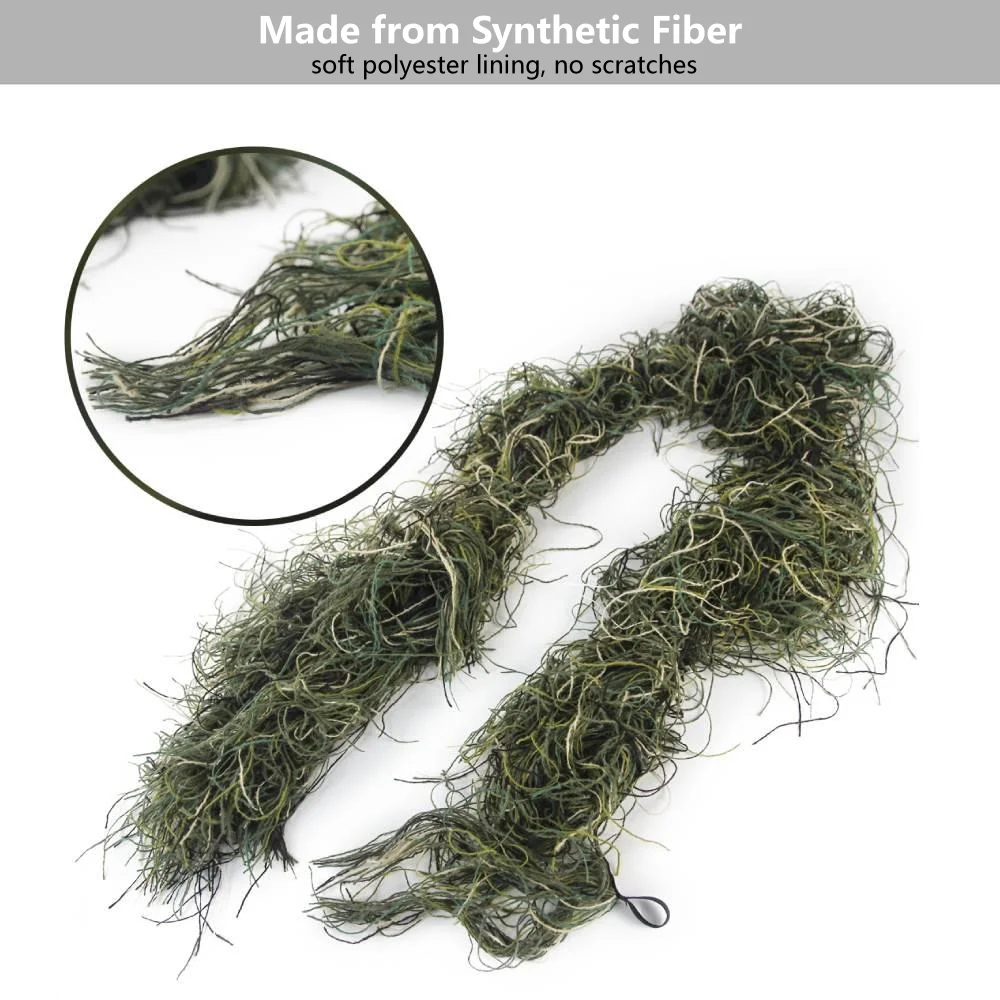Easy To Use- Our gun ghillie cover has an elastic strap that will easily wrap around your rifle, paintball, airsoft gun or even your bow! Will also coordinate with any gillie sniper suit!
