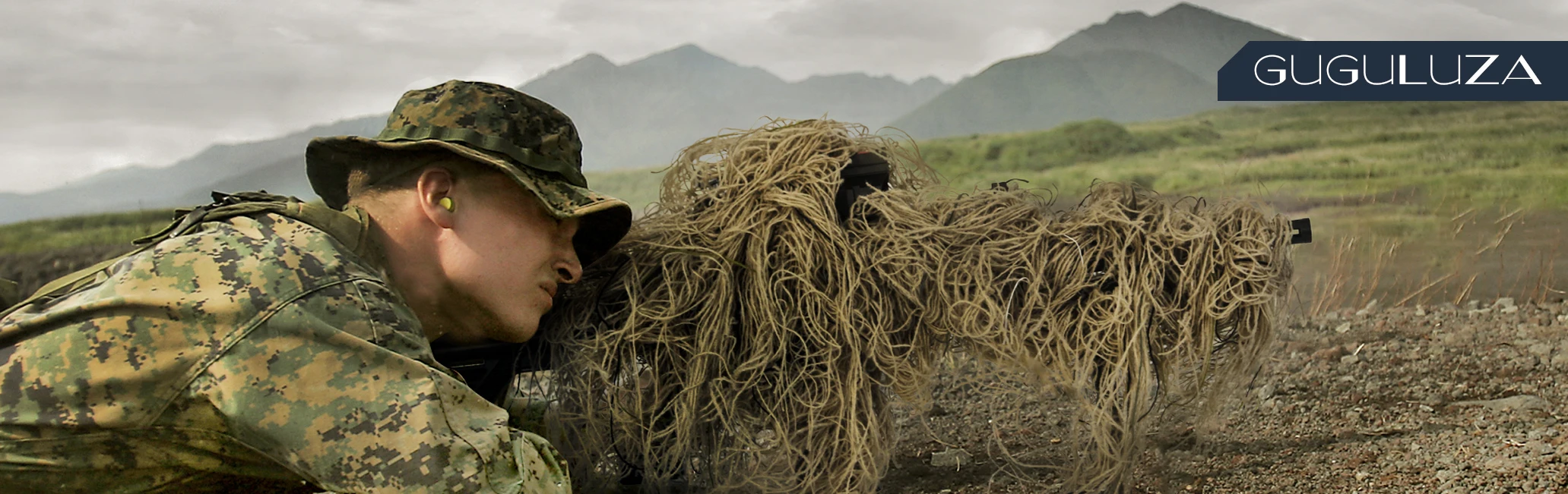 sniper accessories: ghillie suit, ghillie cover, camo rifle