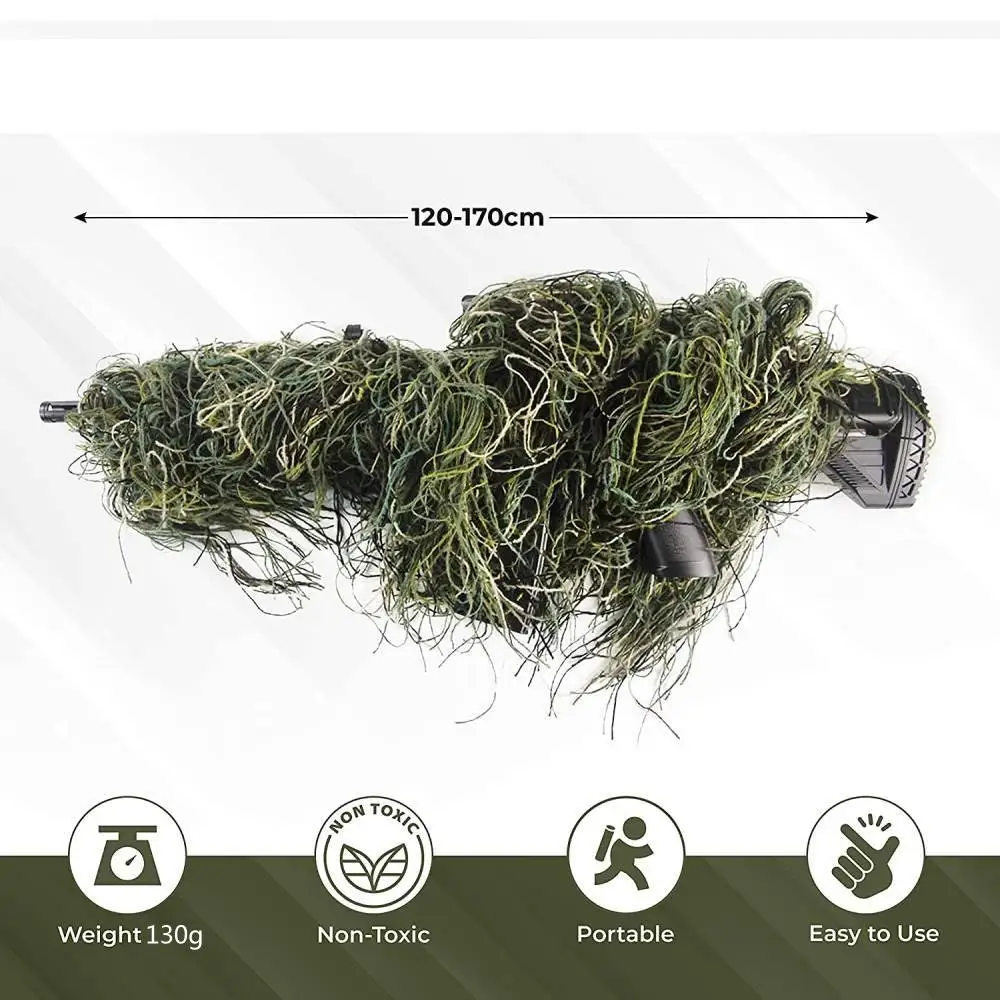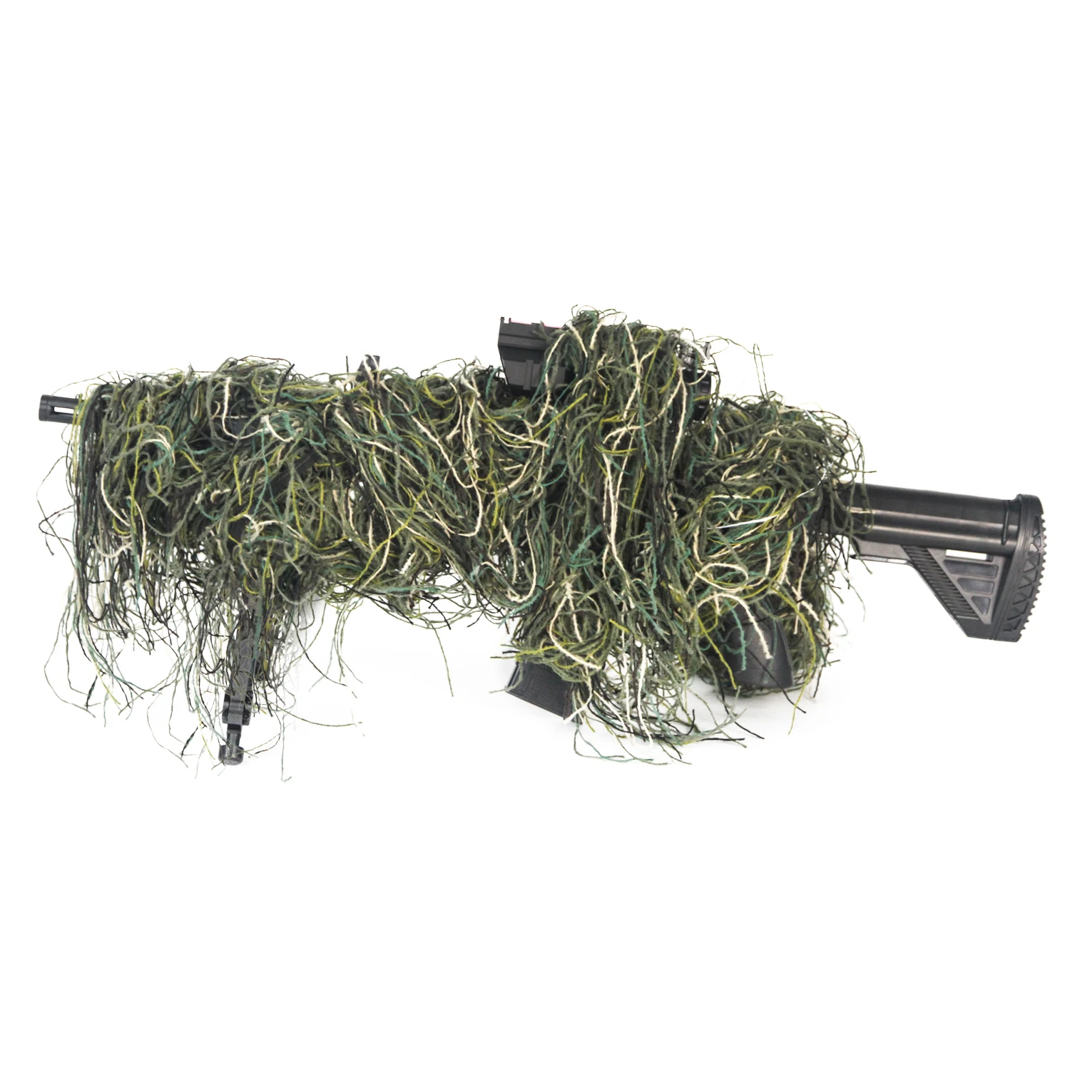 3D Rifle Sniper Ghillie Cover for Hunting Ghillie Suit Woodland-Desert Green Gun Wrap for Paintball Airsoft Accessories