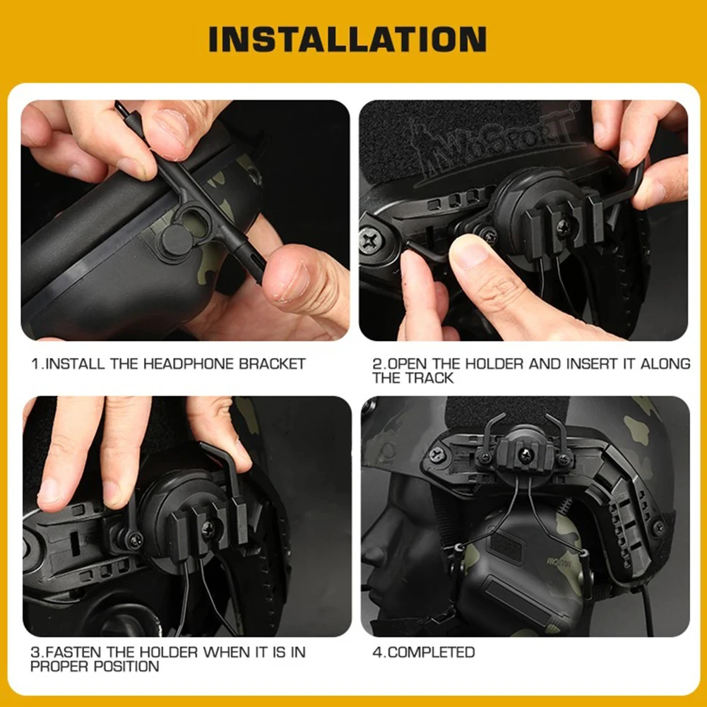 BOOIU Tactical Rail Mounts Headset Fast Helmet Rail Adapter Headset Holder Shooting 360 Rotation Airsoft Helmet Rail Bracket