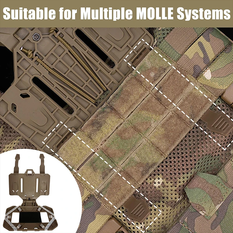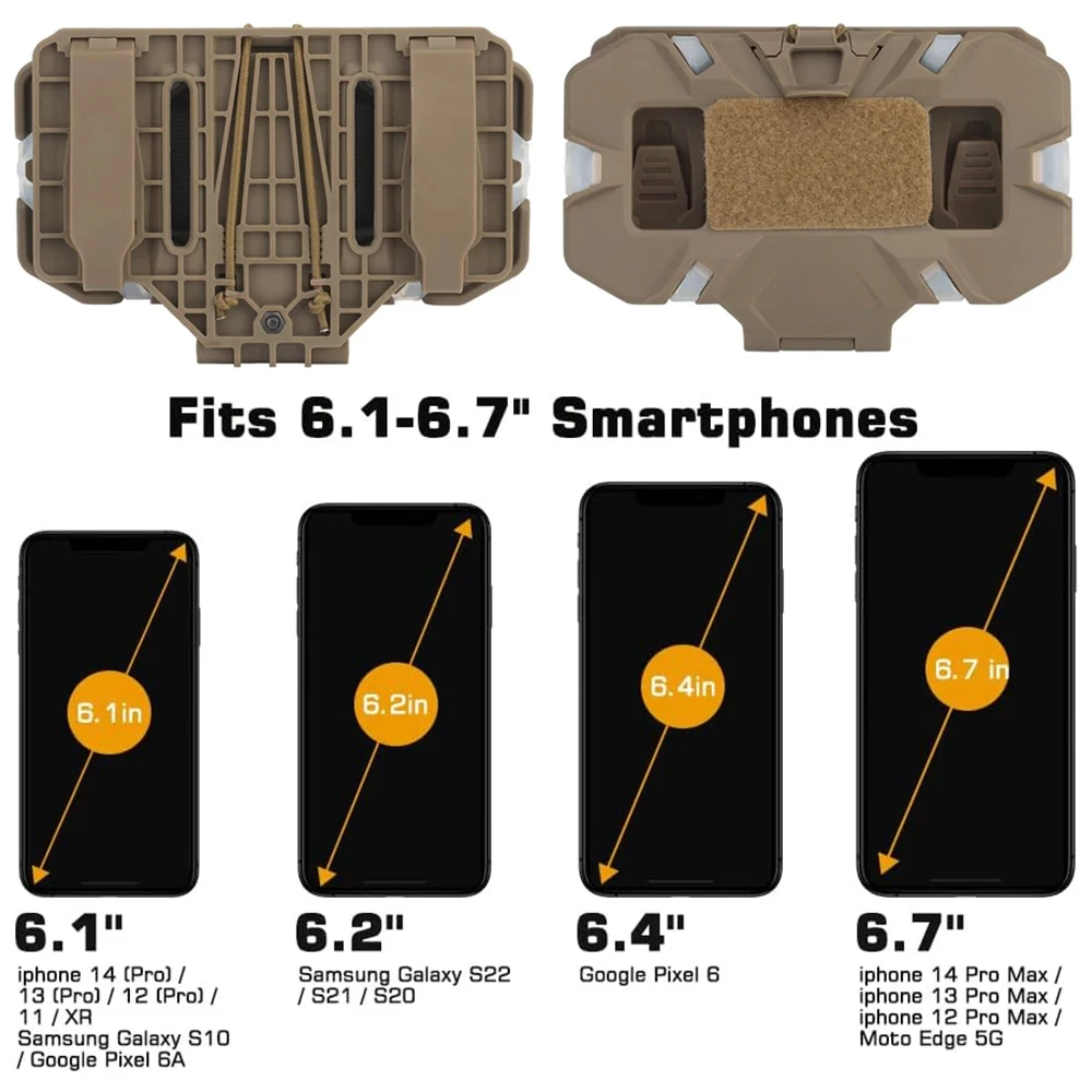 4. Vest-style Mount: The phone board carrier can be attached to a vest or backpack with MOLLE webbing, giving you quick access to your smartphone at all times.