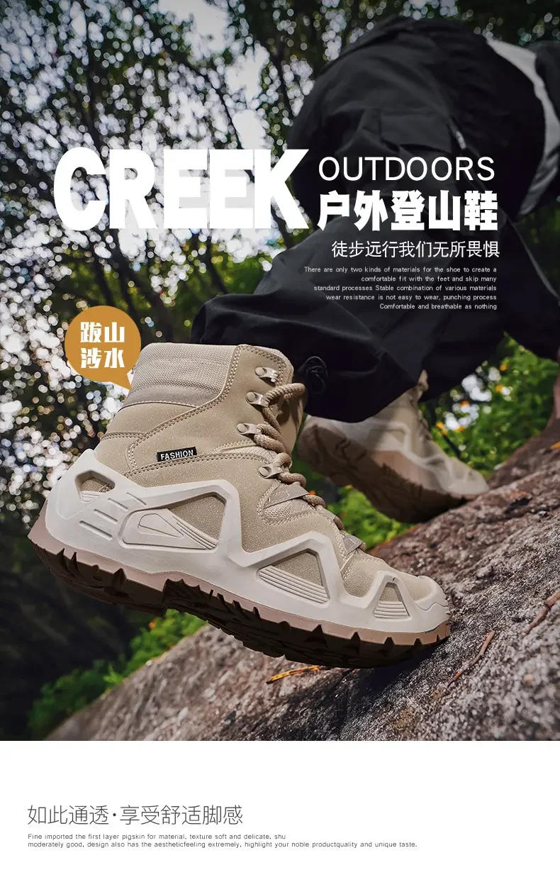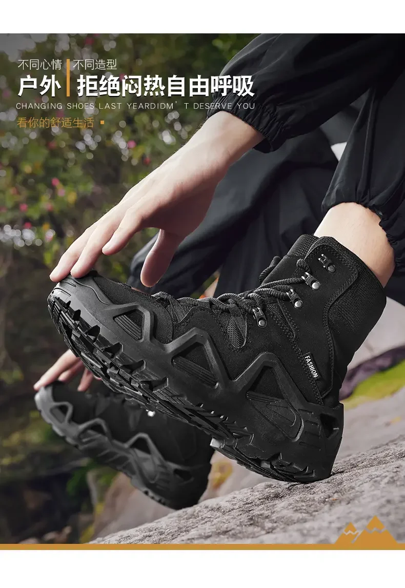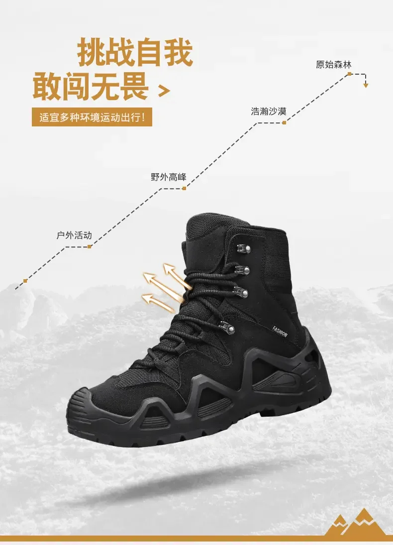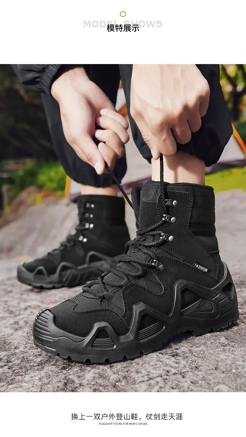 Men Tactical Boots with Straps for Combat Training Waterproof Straps Outdoor Hiking Breathable Shoes Multifunctional Winter