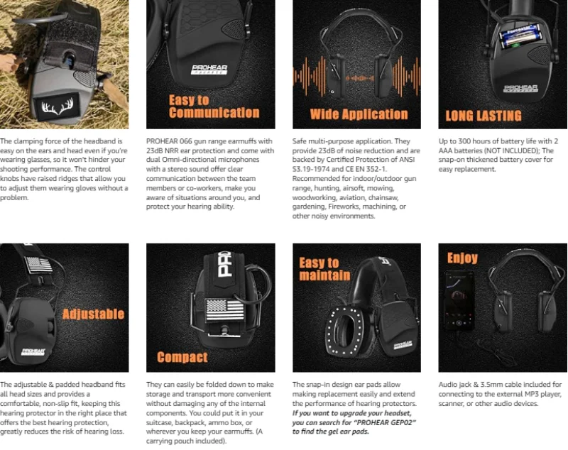 PROHEAR Shooting Electronic Earmuffs Noise Reduction Ear Protection Sound Amplification Hearing Protection For Hunting Gun Range