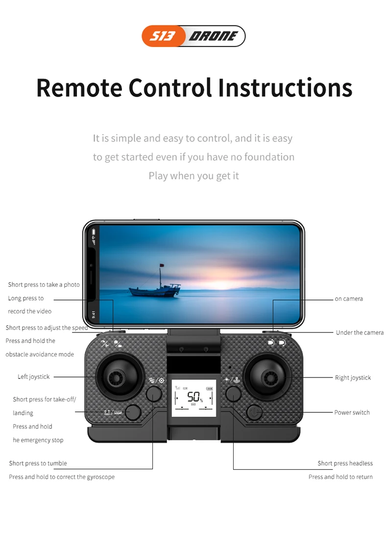 S13 UAV Beginner FPV Racing Drone 6 Axis Cheap Children's Remote Control Drone for Photography 6K Camera Long Range Features