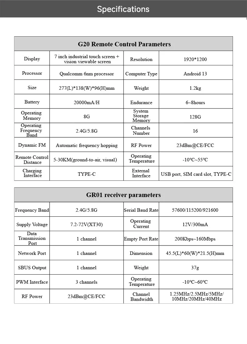 Skydroid G20 16-Channel Dual-Band 2.4G 5.8G Remote Control FPV Drones Cars Boats Robots Dogs 30KM Image Transmission Made Metal